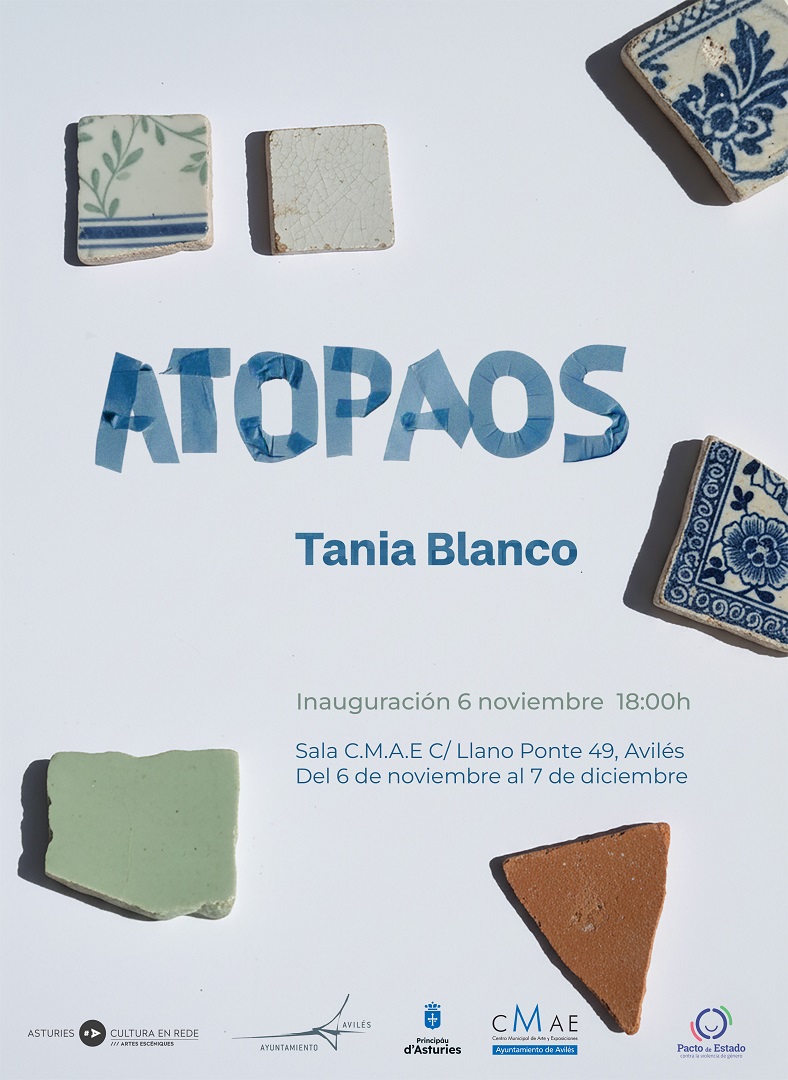 El Centro Municipal de Arte y Exposiciones CMAE de la calle Llano Ponte acoge del 6 de noviembre al 7 de diciembre la exposición 'Atopaos' de la artista asturiana Tania Blanco (Oviedo 1987), reciente ganadora del VIII Premio Museo Barjola de artes plásticas con su proyecto expositivo 'Gas, óxido, sal'. 'Atopaos' es una propuesta expositiva que reúne, a través de una cuidada selección de piezas, los últimos proyectos de la artista donde el hilo conductor de la muestra tiene que ver con la acción de recolectar materiales residuales desde una mirada afectiva hacia los territorios que habita.